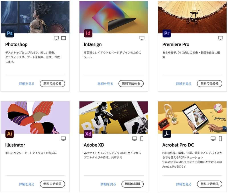AdobeCCでは、7日間の無料体験ができるようになっています。ほとんどのアプリが無料で使えるので、ぜひ利用してみて下さい。