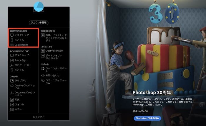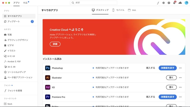 ここまでAdobeの公式サイトからダウンロード・インストールする手順を解説しましたが、実は[Adobe Creative Cloud]というアプリを利用すると早くて便利です。