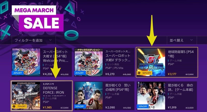 対象タイトルには、左下に『PSPlusのロゴ+割引率』が黄色で表記されています。割引率もかなり高めなので、気になるゲームが対象になっていたら購入しておいても損はないでしょう。