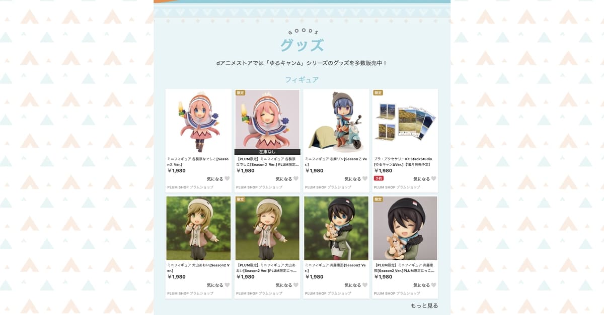 dアニメストアの公式サイトではアニメグッズの情報も掲載されており、好きなアニメのグッズや限定キャンペーンなども簡単にチェックすることができます。