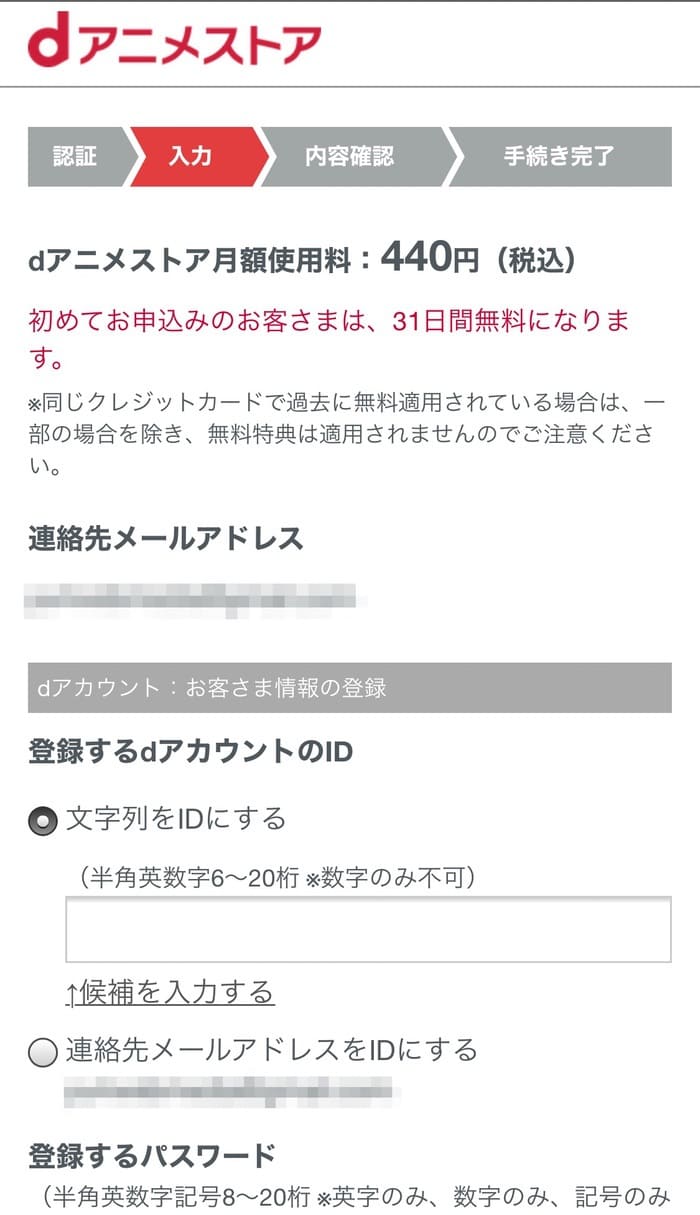 dアニメストアへの登録はPS4からでも行えますが、PS4だと登録情報の入力に手間がかかるので、あらかじめスマホで会員登録を済ませておくのがオススメです。