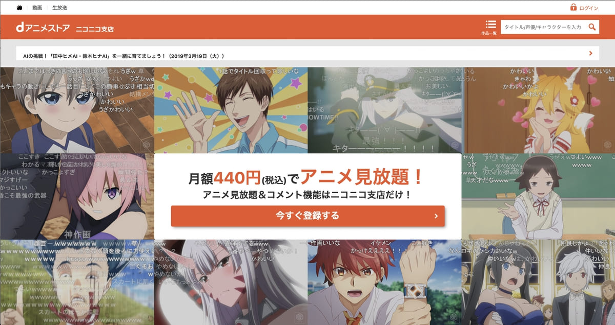 ニコニコ動画から簡単にdアニメストアにアクセスでき、ニコニコ動画ならではの流れるコメント付きでアニメを見られるという特徴があります。