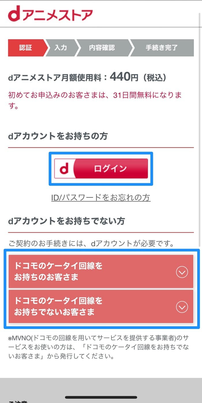 今すぐ『dアニメストア』を無料トライアル!①公式サイトから会員登録を行う
