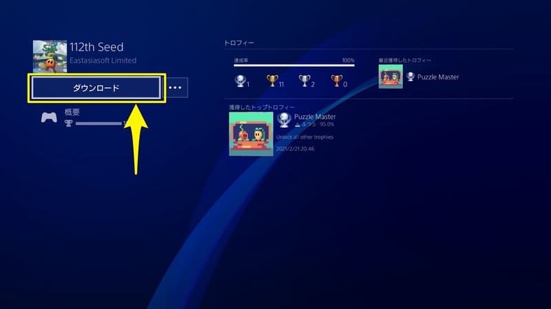 これでゲームの購入は完了です。購入後の画面からは、そのままゲームのダウンロードを行うことができます。