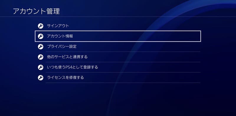 ①[アカウント情報]を選択