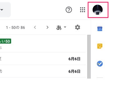 - 右上のプロフィール画像をクリック