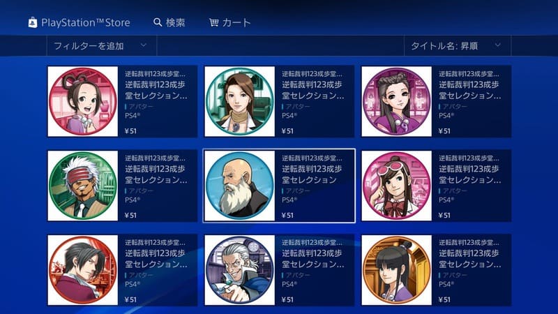 『逆転裁判』の有料アバター。PS4でのリマスター版発売を機にリリースされており、主人公の成歩堂龍一をはじめ、シリーズの登場キャラクターのアバターが数多く揃っています。ファンには堪らないアイテムですね。
