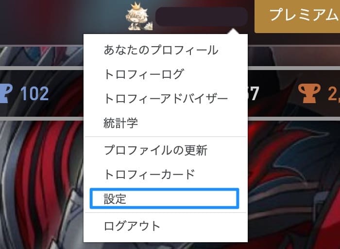 自分が持っているウルトラレアのトロフィーを確認するには、プロフィール画面のメニューから[トロフィーログ]を選択します。