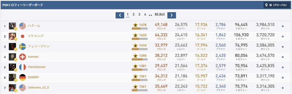 データはPSNアカウントのトロフィーデータが更新された段階で最新情報が取得されます。PS3やPSvitaのトロフィーを同期していない場合は、情報が更新されないので注意しましょう。