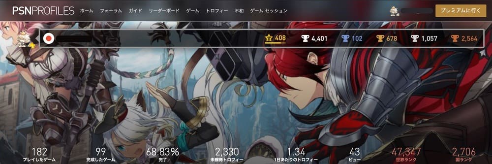 PSNProfilesとは、登録することで自分や他のユーザーのトロフィーデータを閲覧できるようになるサイトです。国内・世界ランキングをチェックしたり、トロフィーが簡単なゲームを探したりできる機能も備わっています。