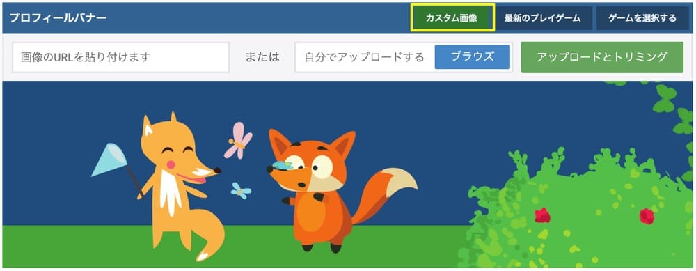 右端にある[ゲームを選択する]をクリックすると、自分が今まで遊んだゲームの中からバナー画像に適用したい作品を選択できます。