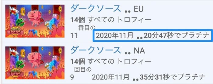 プラチナ獲得時間を目安にすれば、トロフィーが簡単なゲームをチェックすることができます。レベルをげたい時には、ランキング上位のユーザーのページにアクセスし、獲得時間から作品を選別すると良いでしょう。