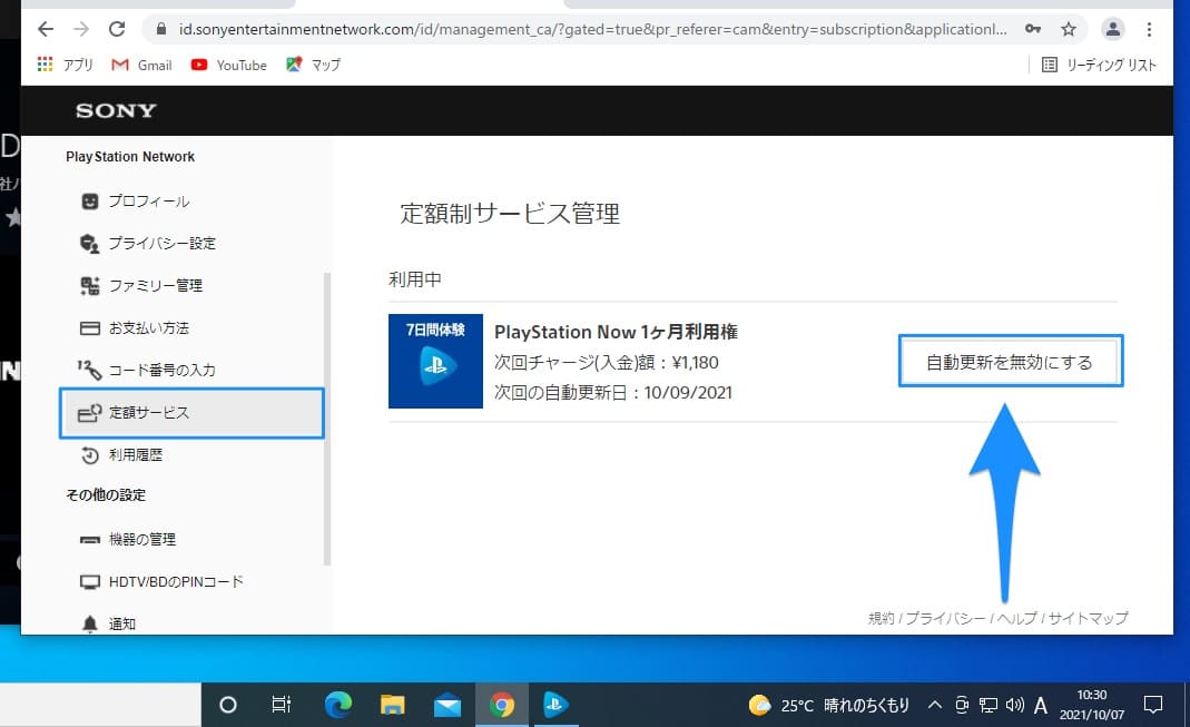 PSNowは自動更新さえオフにすれば解約扱いになります。「無料体験だけ」「1ヶ月だけ」という方は、加入後すぐに自動更新をオフにしておくと良いでしょう。