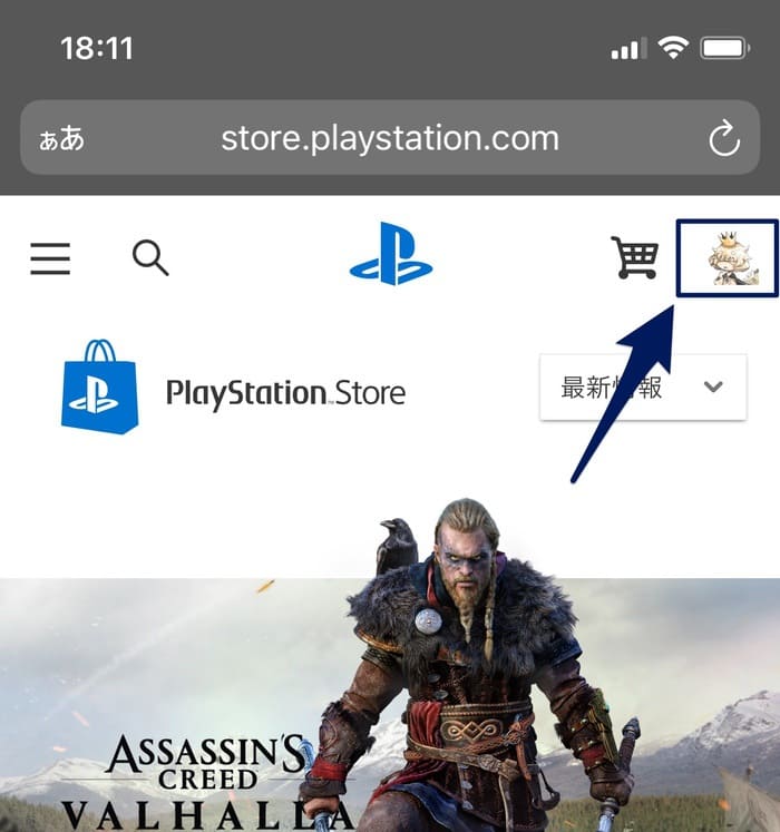 WEBからの場合は、PCの手順とほとんど変わりません。まずはスマホのブラウザアプリから、PSStoreへアクセスしましょう。
