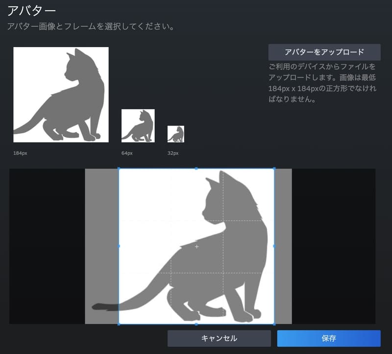 使用されるアバターの画像は184×184pxとなっています。184×184px以上のサイズの画像でも、アップロード後にトリミングを行って好きな箇所をアバターに設定することができます。