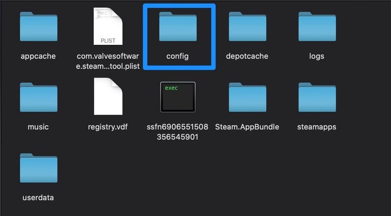 Steamフォルダ内には、Steamアプリに関するフォルダがまとめて保管されています。この中から[config]フォルダをクリックして開きます。
