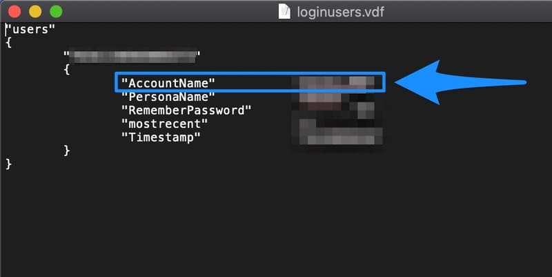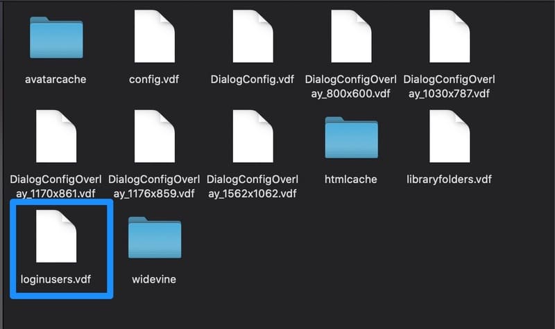 configフォルダを開いたら中にある[loginusers.vdf]という名前のファイルを開きましょう。