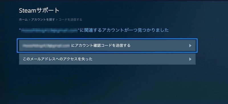 Steamサポートからメールアドレス(もしくは電話番号)での検索を行ったら、メニューから[このメールアドレス(電話番号)へのアクセスを失った]を選択します。