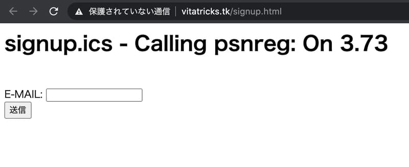 登録が完了したら、PCもしくはスマホから『http://vitatricks.tk/signup.html』にアクセスします。