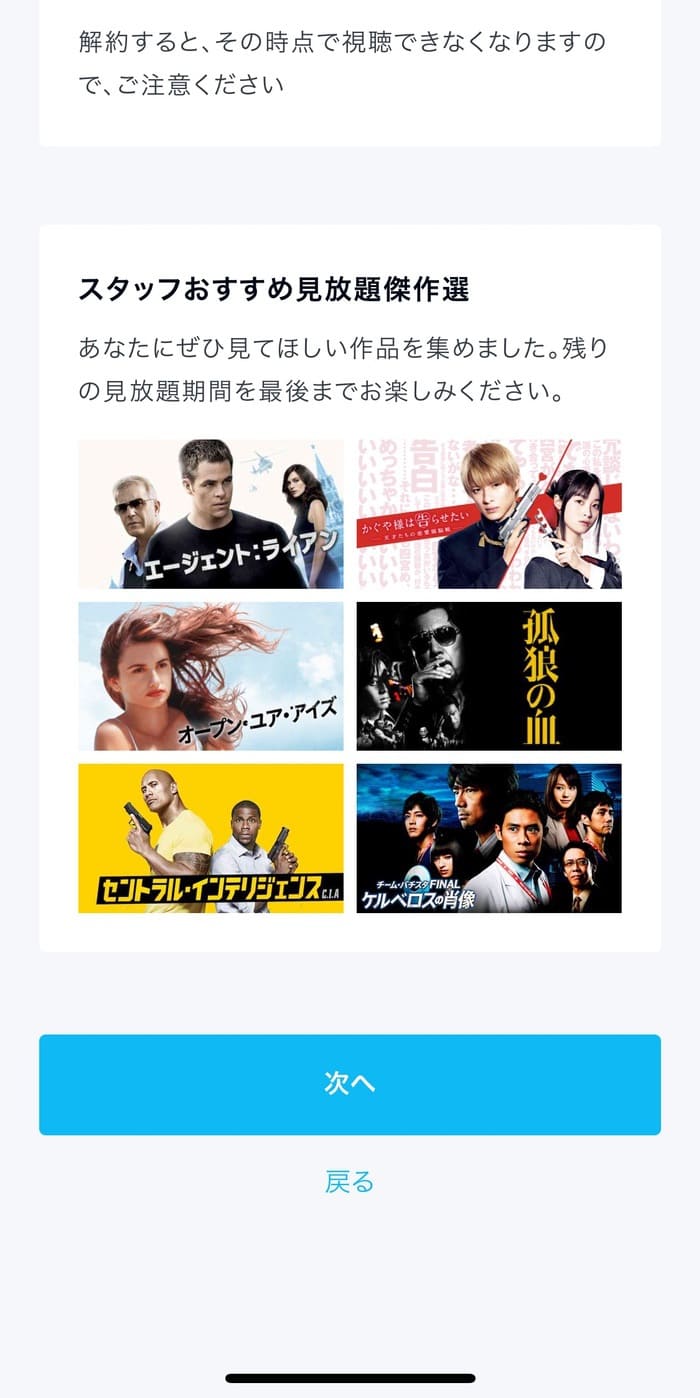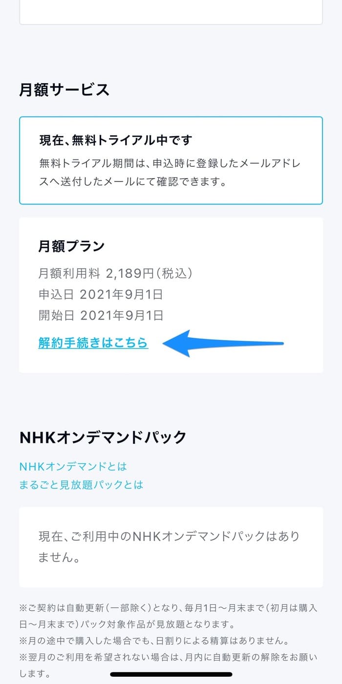 無料トライアル中の場合、解約を行うとそのタイミングで作品の視聴ができなくなってしまいます。