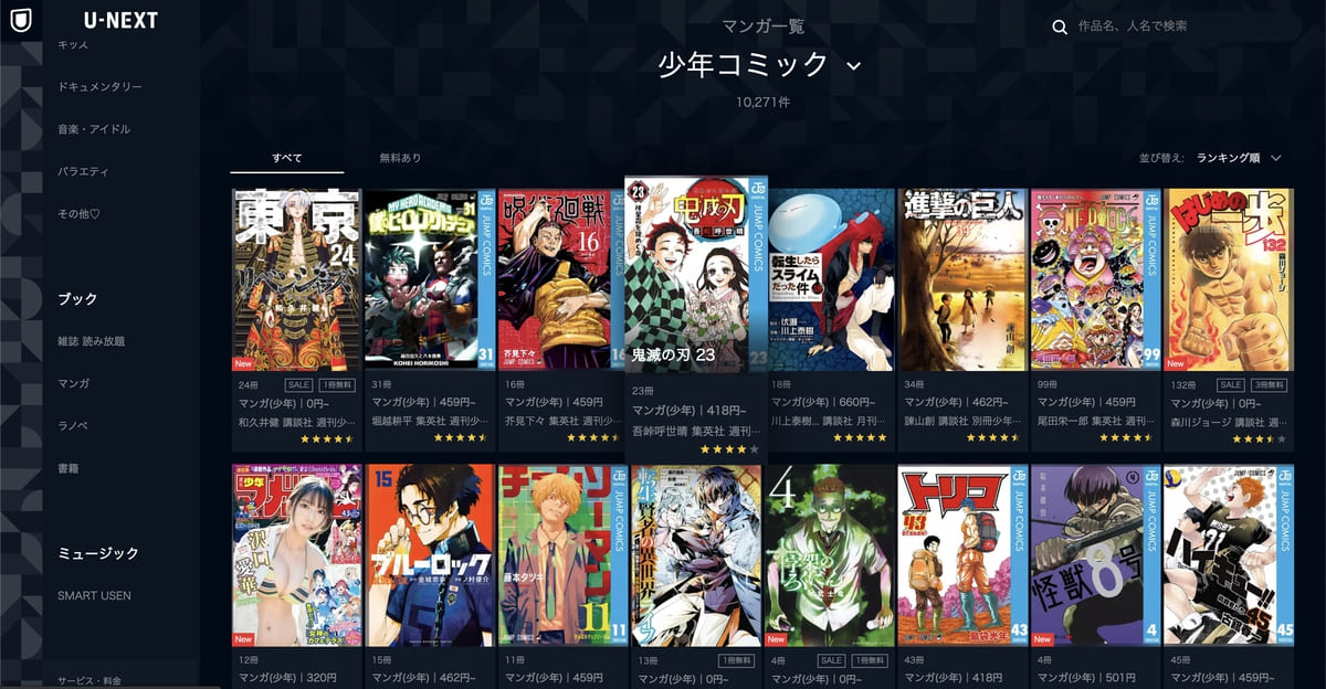 マンガや書籍はU-NEXTポイントで購入することができ、価格もamazonのKindle版とほぼ同じ(コミックス・単行本版より安い)になっています。