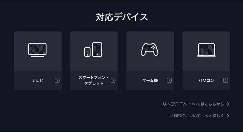 対応デバイスについて詳しくは、U-NEXT 対応デバイス一覧のページをご覧ください。