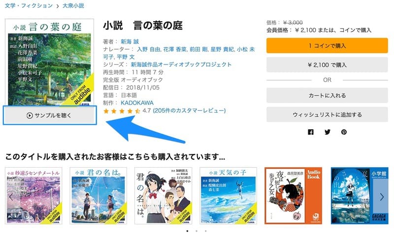 「オーディオブックってどんなもの?」「朗読劇ってどんな感じ?」という場合も、サンプルを視聴してみるとイメージが掴めるはずです。