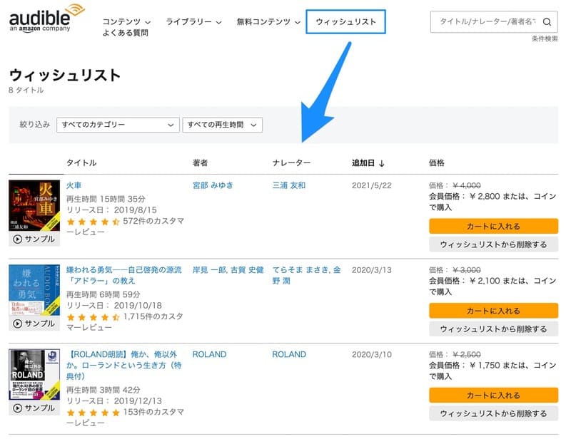 ウィッシュリストはお気に入りのようなもので、気になる作品が見つかった場合はまとめて保存しておくと良いでしょう。またウィッシュリストのページから、まとめてサンプルを視聴するという使い方もできます。