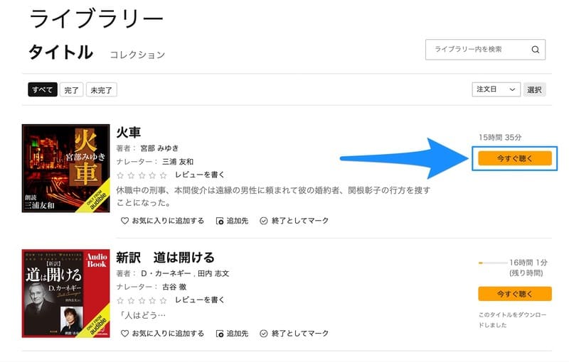 必ずしもアプリが必要というわけではありません。ブラウザからAudible.co.jpにアクセスしても、オーディオブックを視聴することができます。