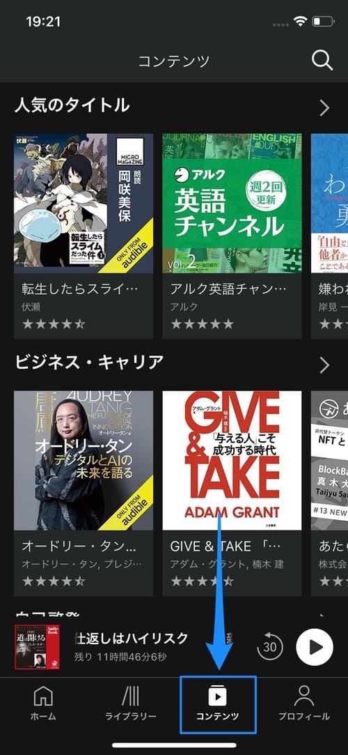 Audibleアプリをダウンロード