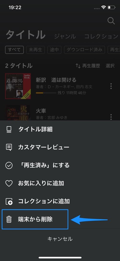 ダウンロードした作品を削除しても、購入した作品そのものが削除されるわけではないのでご安心ください。Audibleでダウンロードしたデータはデバイス本体の容量を利用しているので、「読み終わった」「外では使わない」という場合には削除しておくと良いでしょう。